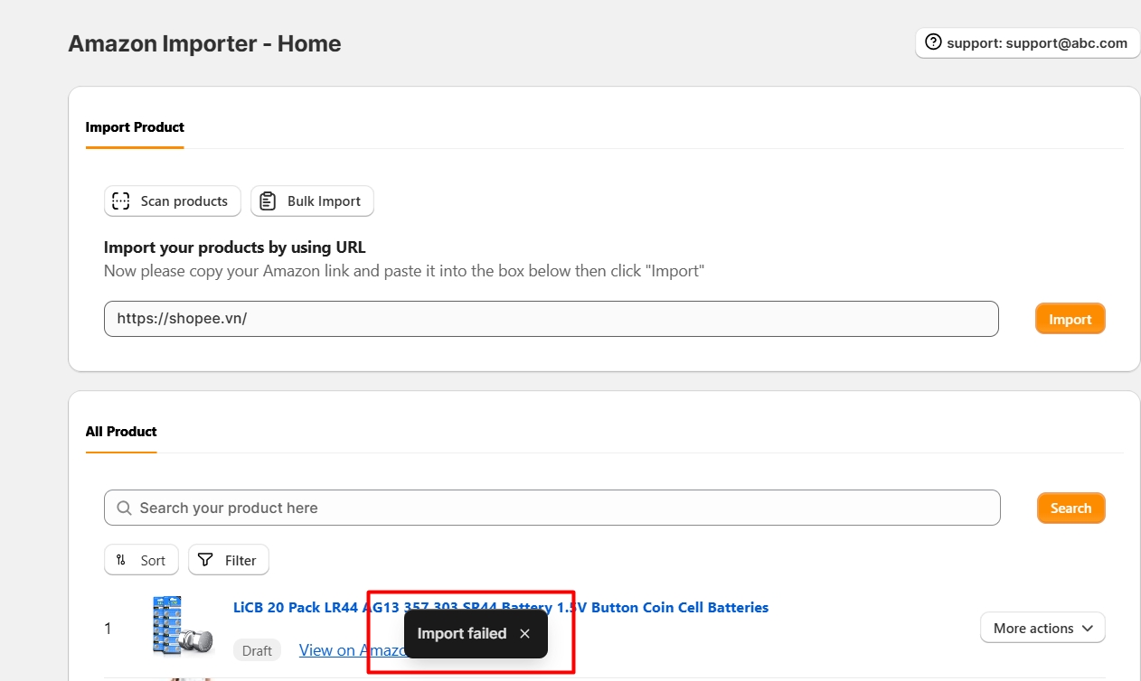 On the Amazon Importer - Home page, you’ll find the Import Product section at the top of the screen.