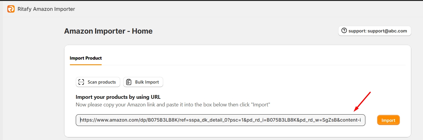 Copy and paste the Amazon URL of the product you want to import into the Import Product box.